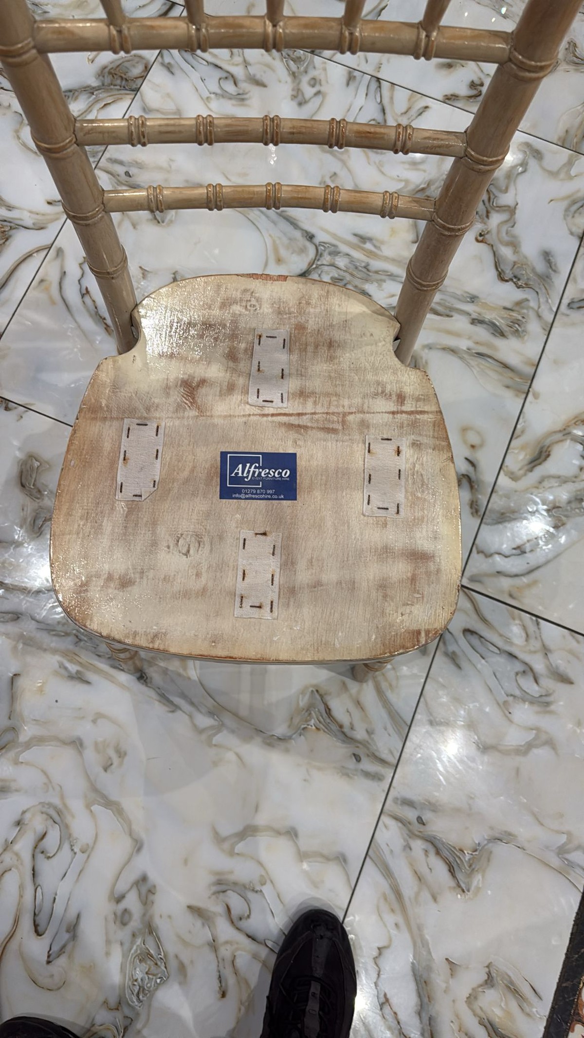 Used Limewash Chivari chairs.These chairs only have been used at a venue.