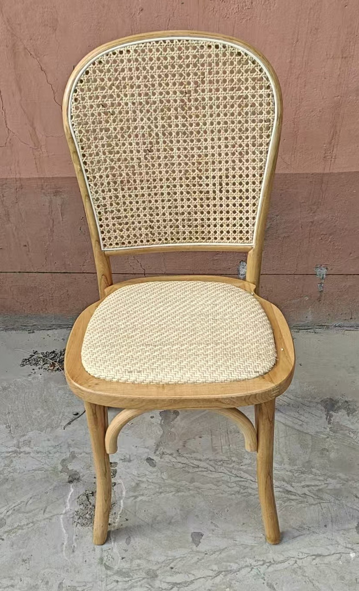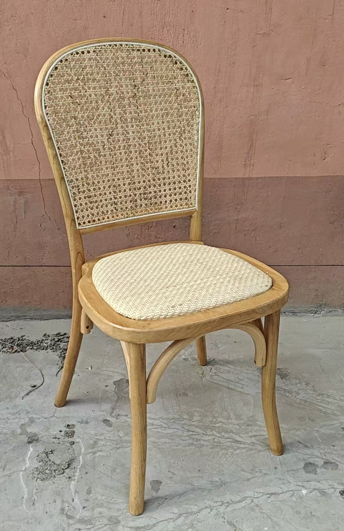 Lovely cross-back chair with rattan seat and cane backrest.A classic design that works beautifully for cafés, restaurants, weddings, or stylish home dining.